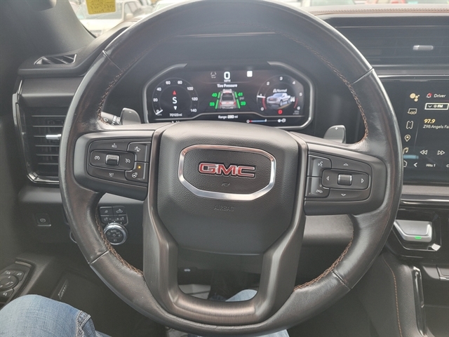 Recent Arrival! Titanium Rush Metallic Sierra 1500 AT4, 10-Speed Automatic, 4WD, Jet Black w/Kalahari Accents w/Perforated Front Leather Seat Trim, Adaptive Cruise Control, AT4 Preferred Package, Power Sliding Rear Window w/Rear Defogger, Universal Home Remote.